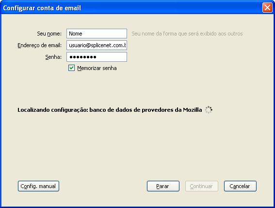 | Nome da conta: | seu endereço de e-mail completo (nomedeusuario@splicenet.com.br) |
