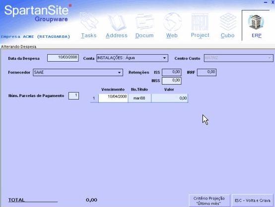 | + | Logo depois de informado o valor da parcela pressione a tecla Enter no teclado para que o valor total seja gravado e fique de acordo com o solicitado (sendo o valor total da despesa informado no canto inferior esquerdo). | ||