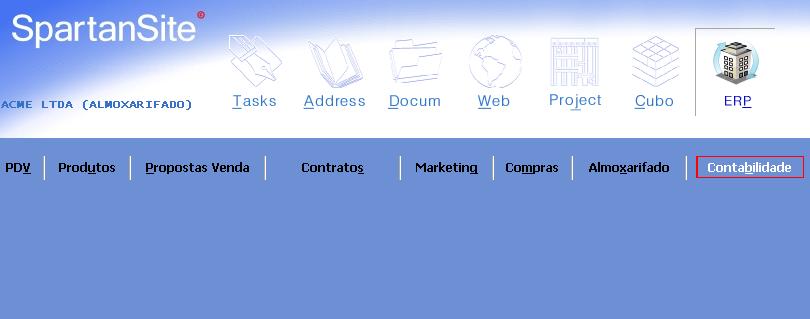 | − | + | Serão exibidas algumas abas nas quais as opções podem variar de acordo com as permissões do usuário. Clique em '''Contabilidade'''; | |