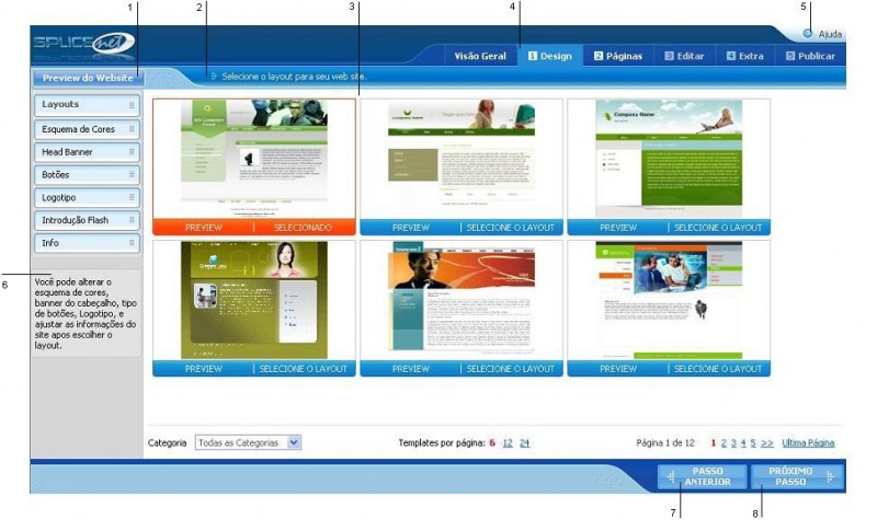8. '''Próximo Passo''' - muda para o próximo passo da criação do site.
