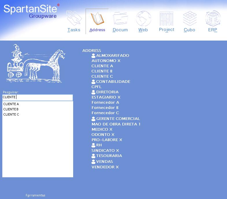 Pode-se procurar um contato pesquisando pelo nome/razão social, CPF/CNPJ ou e-mail de contato.