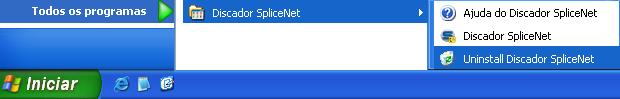 Clique em Iniciar > Programas ou Todos os Programas > Discador SpliceNet > Uninstall Discador SpliceNet.