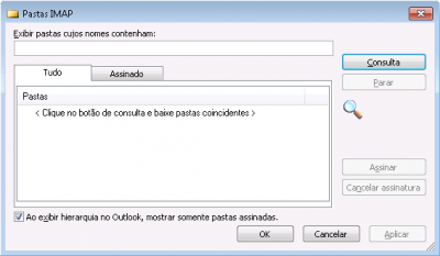 | 4. Para que as pastas apareçam na lista de pastas do Outlook, clique sobre o nome da pasta e após clique no botão Assinar.