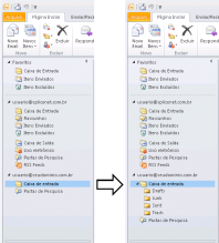 | 7. Note que na lista de pastas agora antes da pasta Caixa de entrada existe uma pequena seta para a direita.