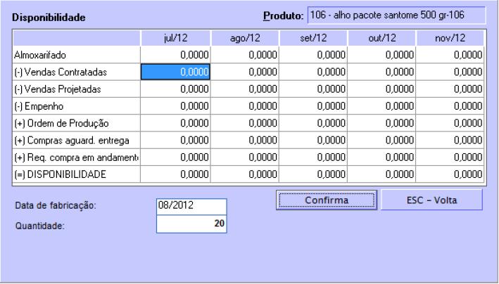 Vamos apontar a produção de 15 caixas do alho a granel limpo. Agora o cronograma de produção se alterou para 2 dias, pois se temos uma produção diária de 15 computadores, necessitamos de pelo menos 2 dias para produzir 20 caixas.