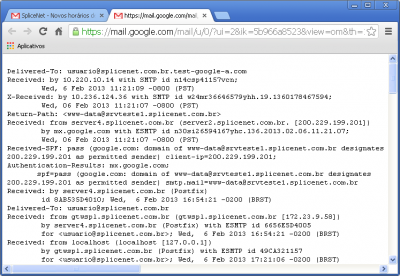 | Para visualizar o cabeçalho completo de uma mensagem no Webmail Google: