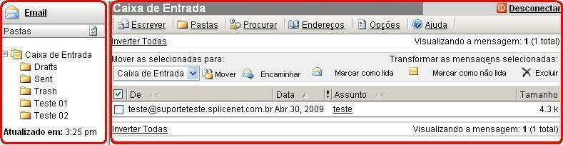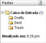 - Por padrão, o webmail atual, possui uma pasta Caixa de Entrada com as subpastas Drafts (Rascunhos), Sent (Enviadas) e Trash (Lixeira).