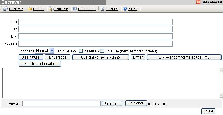 - Escrever - Redigir e enviar mensagens que podem conter arquivos anexados.